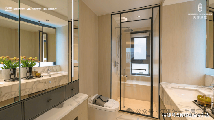 不光是品牌,选材上更是出彩。选用整块大尺寸玻璃+“三玻两腔”门窗系统,厨房采用大块马可波罗岩板,诸如此类的细节比比皆是。