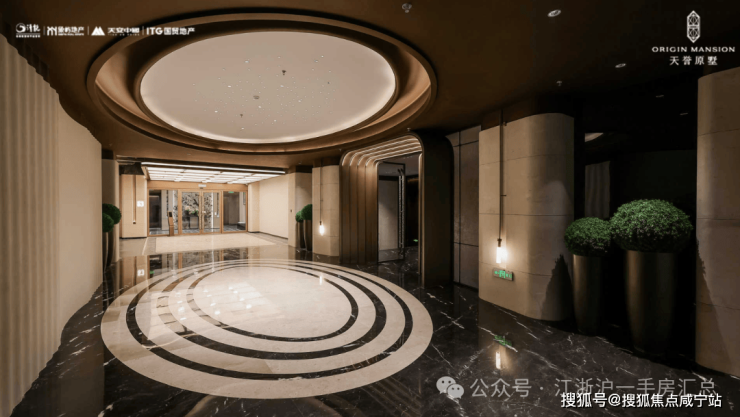 酒店式归家礼序:约54米恢弘门厅,配以约6.5米挑高门廊,两侧臻选金米黄石材与库班绿石材,艺术水景与名贵乔木掩映,归家的仪式感,从第一眼便极致拉升。