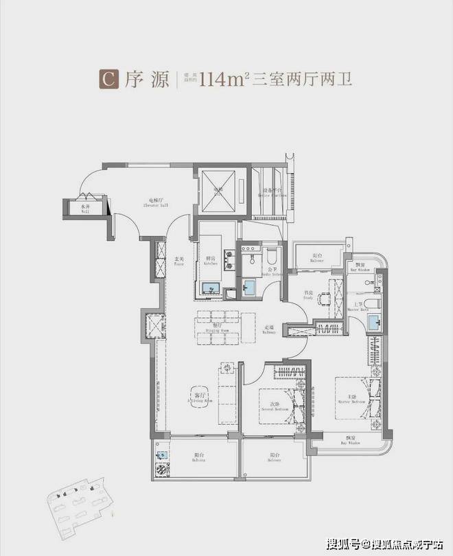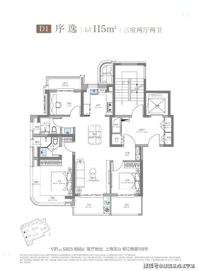建面约115㎡3房2卫只有二期才会有