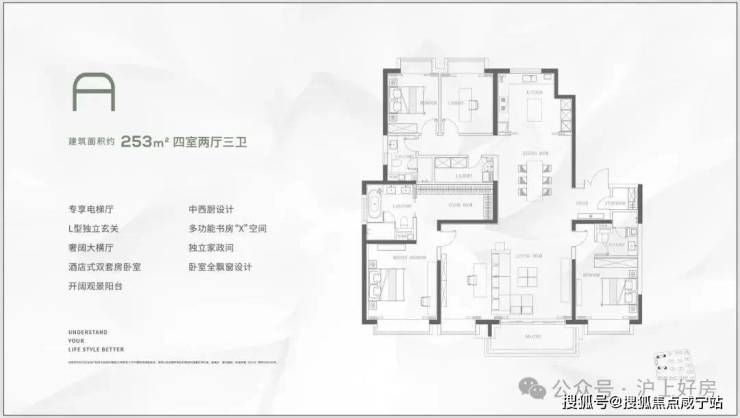 这个是入户玄关处的地面,大理石地面搭配金属线条勾勒出玄关地界,归家的氛围感从这个区域就开始了~这还不是重点,玄关座椅背后,是一面皮革包裹的墙面。鞋柜下方做了悬浮处理,同样也是内嵌灯带,这里灯光的角度还会再调整,因为灯光映射在大理石地面上,要显得尽量柔和不刺眼;同时,鞋柜下方可放拖鞋,还能放扫地机器人,便于日常清扫打理。鞋柜的饰面,纹路方向统一,呈现出极强的协调感。橱柜作为强功能性的收纳系统,自然少不了操作性能上的考究,吊柜做了升降式的拉篮,以后再也不用爬上高凳拿取了。下方的橱柜则做了转角拉篮,充分利用转角空间,使物品井然有序的同时,轻松方便取放。水槽也是一个大单槽,放得下炒锅汤锅这种大物件~抽拉式龙头,清洗大水槽的时候很方便,360度旋转伸展自如,这款弯管还是硅胶材质,柔软耐用有弹性,还可切换出水模式,出来的水柱也是很柔和细腻不飞溅。厨房玻璃门是上轨道移门,意味着地面部分没有任何轨道,不会有灰尘积攒,炒菜时关上,避免油烟散入室内;平时拉开,可以扩充室内视觉感受。卫浴缦云上海所有户型的所有卫生间里都用了悬浮式的洁具和柜体,确保了下方空间的打扫无死角,对未来的入住带来非常大的便利性!吉博力同层排水技术,静音是最大亮点;特制“水母”地漏,多重防臭防反溢。干净舒适的卫生间,是从空气到水流的全面把控~你们可以看下缦云上海是如何处理卫生间木门的防潮的——卫生间一侧用大理石做踢脚线,这是真正细致入微的巧思!主卧卫生间配备的电热毛巾架简直就是遇到潮冷节气的“福音”,让毛巾、内衣都能够提前加热干燥。层高 对于缦云上海的纯大宅社区定位,能买这样产品的购房者会非常在意空间感。缦云上海全部户型层高约3.3米,室内所有空间的门都做了通顶设计,更阔绰的居室空间,将生活格局有效放大,通风、采光和观景体验的全方位提升!弧形元素缦云上海样板间里随处可见柔和的圆弧修饰,特别是柜体、墙体包边的圆弧转角,在进出各个空间时,减少磕碰的风险,对于有孩子和老人的家庭来说,是非常实用的友好设计。而且,门套做了弧形设计后,还叠加了金属线与墙纸做了分割,加强隔断界限感,提升室内家居精致度~比起中规中矩的直线,弧形施工工艺更复杂、造价更高,却多了几分灵动轻盈!这种弧形的元素不只是在样板间里,在售楼处也能经常看到,比如电梯厅。