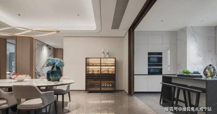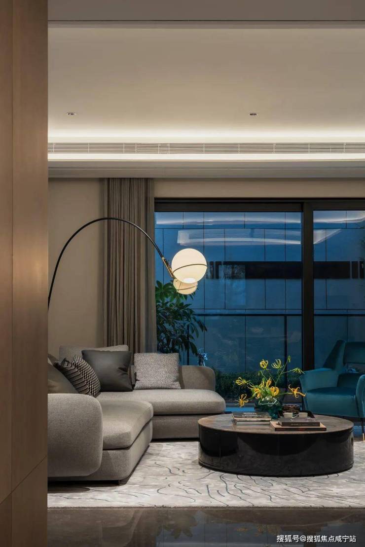 室内设计,秉承摩登东方的理念,设计以人、生活为中心,从空间本体和情感层面都回归生活,270度环幕采光,开放式会客厅设计,兼具尺度感与功能性。