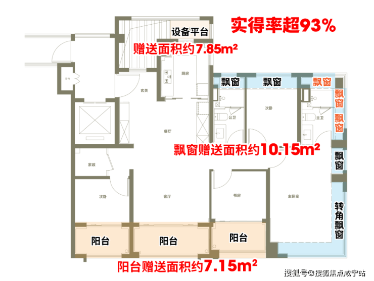 第三大亮点,三阳台+罕见设备平台,实得率拉满!