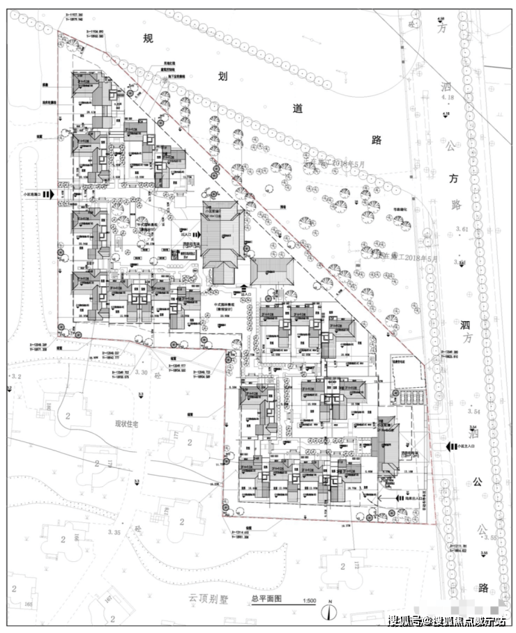 从规划设计方案来看,每一栋别墅的大小户型、朝向,都有些微差距,与曼荼园那种“一栋一设计”应该有几分异曲同工之妙,小区内部有2处重视园林景观,一处小区配套(大概就是会所)。