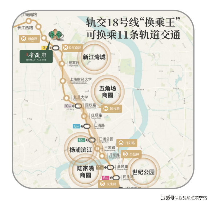 通车后,将串联上海核心资源,1站新江湾城,3站直达上海财经大学,4站畅达复旦大学,无缝换乘多达11条轨交线路,直抵无界江湾都芯生活!