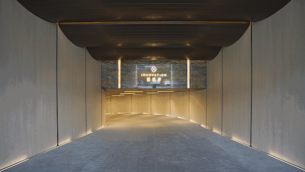 地上空间的美学感受随着车行归家动线也延伸到了地下,招商序的地下车库,不仅精装交付,还提出了“中央车站”的概念。
