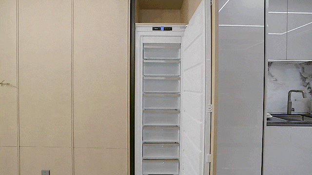 当然,项目延续了以往玖系产品里备受认可的交付标准,并优化了功能不足的问题。比如厨房冰箱,依旧甄选专业性能强的美诺独立双冰箱,即使是小户型的冰箱也是独立的两台,在保证选品的前提下,更合理地利用了室内空间。
