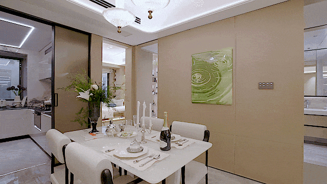 客餐厅同宽的一体化设计,公区视野更开阔,消灭过道对面积极致利用!