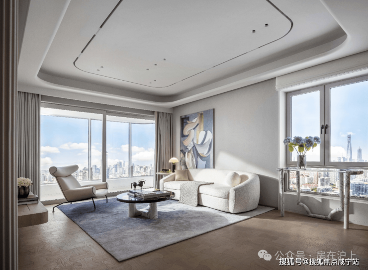在功能空间的尺度上,整个客餐厅面积达到了约40㎡,双面采光空间奢阔,西面直面陆家嘴三件套,还能看江!主卧套房则拥有约30㎡大空间,足以媲美市面上建面约240㎡的产品。