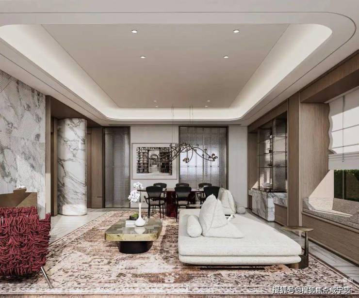 中叠户型四开间朝南,步入玄关即被IMAX级全景落地窗震撼,自然光线与园林景观透过超大玻璃幕墙倾泻而入。