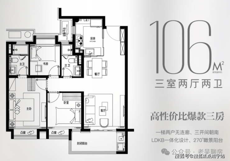 客餐厅一体化+开放式厨房+大尺度观景阳台,整个公区几乎没有面积浪费,营造的空间感和尺度感远超同价位其他竞品;