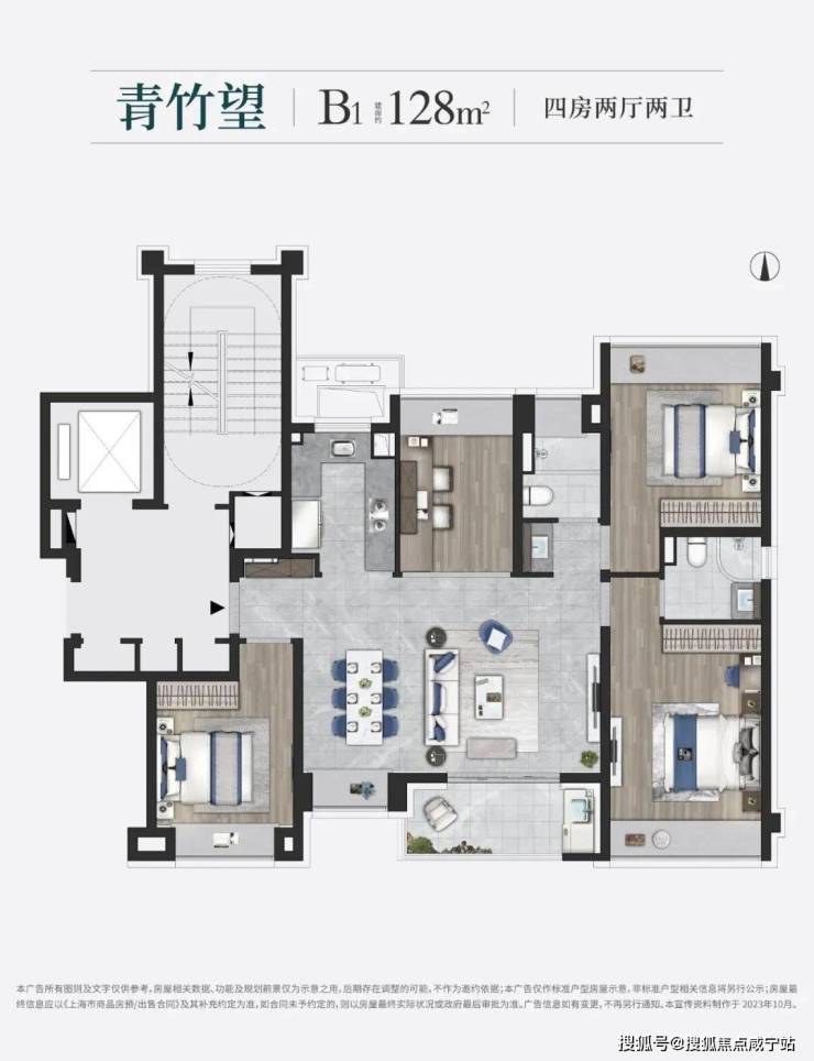 如果家庭有二孩或者三代同堂需要的,那建面约150㎡的四房大平层一定要优先加入您的“购物车”,标准的“大面宽短进深”的黄金户型格局,直接让人竖起大拇指: