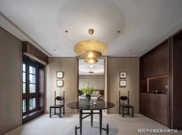 建筑面积约495㎡传家大宅,海派气质内外辉映;深色木饰面与柔和的刺绣主背景,框定空间层次格局,营造稳当厚重的氛围基调,法式留白的墙面与顶部造型,与原筑提取的典型拼花地砖相呼应,经典的精致与典雅,海派传家大宅的气度不言而明。