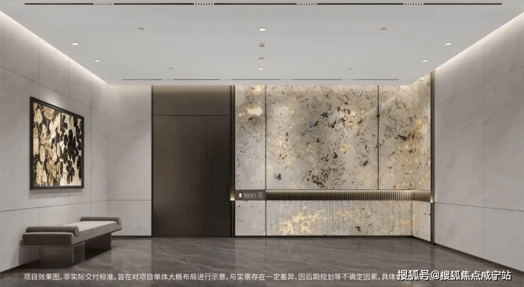 精选雪山银狐天然透光石材,采用高难度的弧形设计与金属格栅腰线相结合。定制的地下入户大堂,延续首层入户大堂的高标准材质,选用雪山银狐天然透光石材,营造出奢华的生活质感。优雅的艺术地库空间,古铜色金属与水波纹玻璃的质感搭配,构建出璀璨的星空穹顶,模拟自然光线随时间变化的动态效果,光洁明亮的水磨石车道,精心雕琢出格调十足的归家之路。
