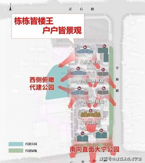 从规划图来看,项目前排可直面大宁灵石公园无敌景观;而办公部分设置在地块东北侧,也有隔断进行出入口区分,对住宅部分来说几乎没有影响。