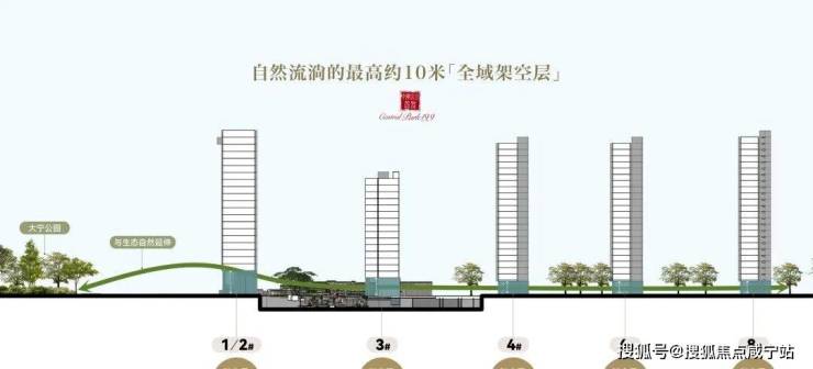 这个标准比不少甲级写字楼还高,几乎跟国金中心、柏悦酒店那种顶级商用空间看齐了,这样的架空层高度,天然的让建筑悬浮在植被之上,每户都是景观最C位。
