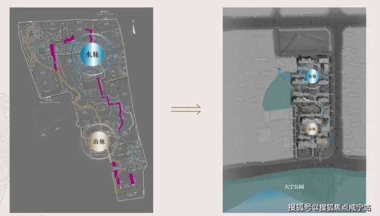 社区内部,设计团队以豫园为灵感蓝本,运用现代手法重新诠释豫园的“山脉”与“水脉”,打造出一座立体起伏的山水园林。