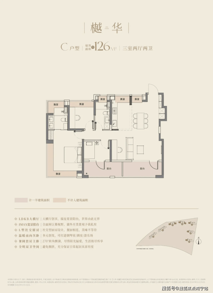 高实得率:多阳台+全景飘窗设计,部分户型实得面积较市场同面积段产品增加约10%。