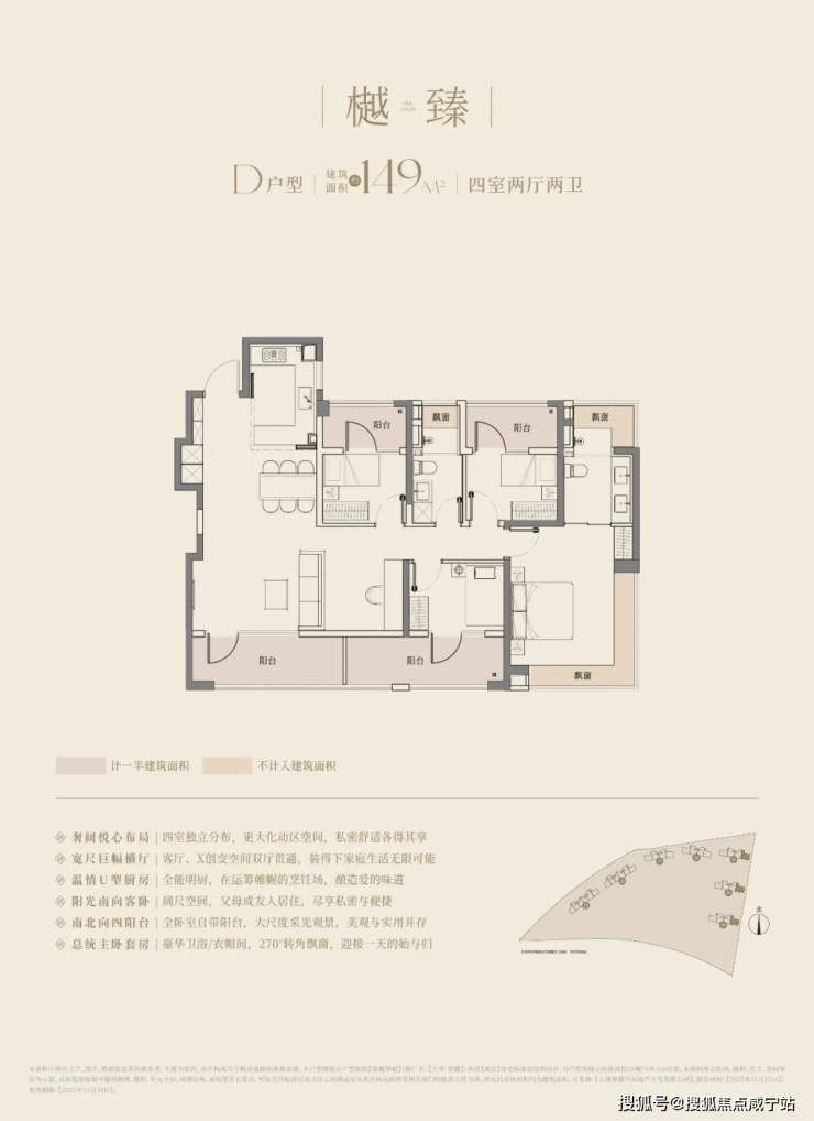 以建面约148㎡户型为例,四阳台+双270°转角飘窗设计,实得面积多出约15㎡,相当于“白赚一间书房”。