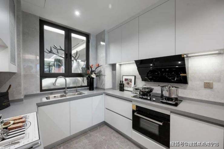 厨房更是给我们带来更多惊喜,像厨房的移门,做了上轨道......下轨道虽然是市面比较常见的,但是容易卡灰尘、视觉上的空间割裂感,都是问题,所以,懂的人都懂......
