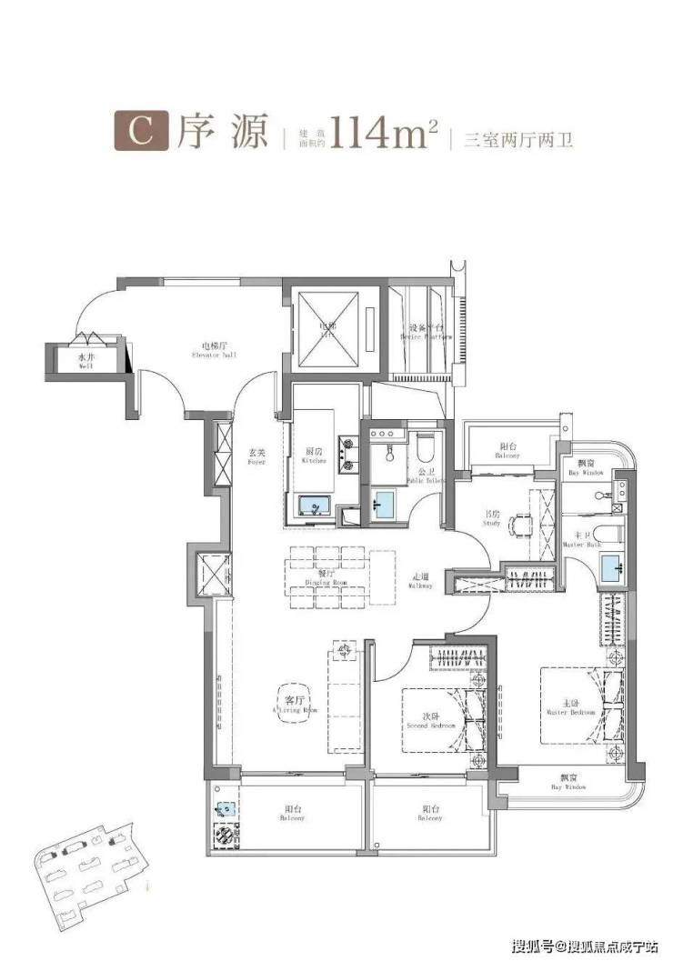 值得注意的是,建面约115㎡3房2卫只有二期才会有。