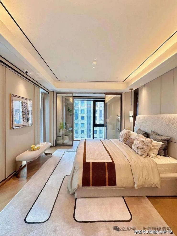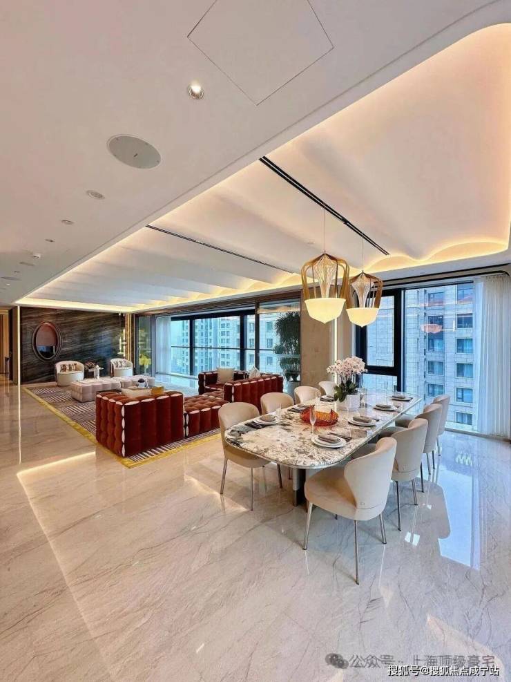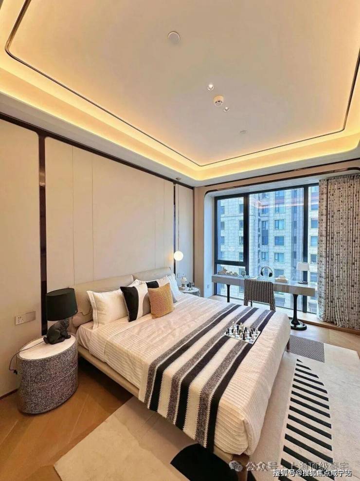 装修上,将时尚与奢华巧妙融入每个角落,所有的窗帘、移门、提升窗、灯光、空调、新风、地暖都可以通过手机远程控制。