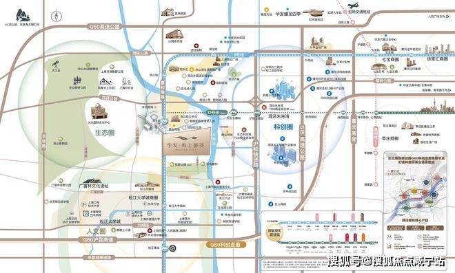 合心规划 产城样板:【“科创+人文+生态”城市单元示范】华发海上都荟首入松江,携崭新“优+产品体系5.0”,为洞泾、乃至为松江带来目前区域内综合高品质作品。结合上海生态环境保护“十四五“规划,站位国际领先的可持续性项目规划,华发海上都荟结合自身的独特聚合优势,在传统TOD规划之上,不可复制的土地生态资源,向东链接G60科创走廊“以镇命名为区块”洞泾人工智能产业基地;向南直达亚洲大学城之一——松江大学城;北侧紧连上海陆面自然山林资源——佘山国家旅游度假区。板块将区域打造成为“科创+文教+生态”交汇的核心新城模式,划立一个崭新的城市单元示范。