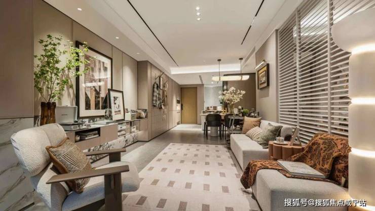 叠墅户型的通透性已不需多言,仅是从 270 度转角飘窗向外随意一瞥,温暖的阳光、葱郁的绿色仿佛触手可及,如同将自然的美好全然纳入怀中 。