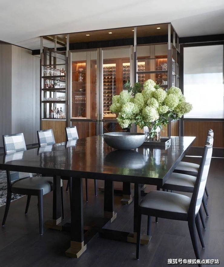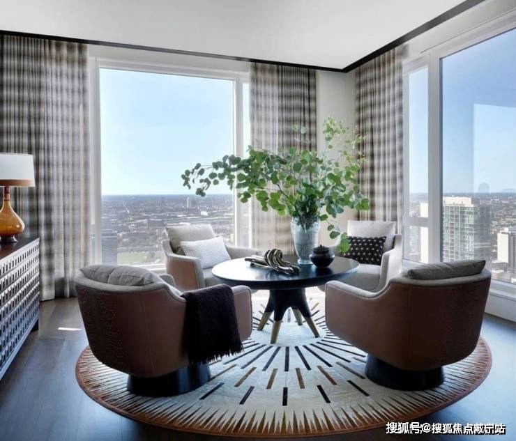 在宽敞的落地窗边安放休闲餐桌椅,俯瞰整个城市美丽景色的同时也让心情得到洗涤.