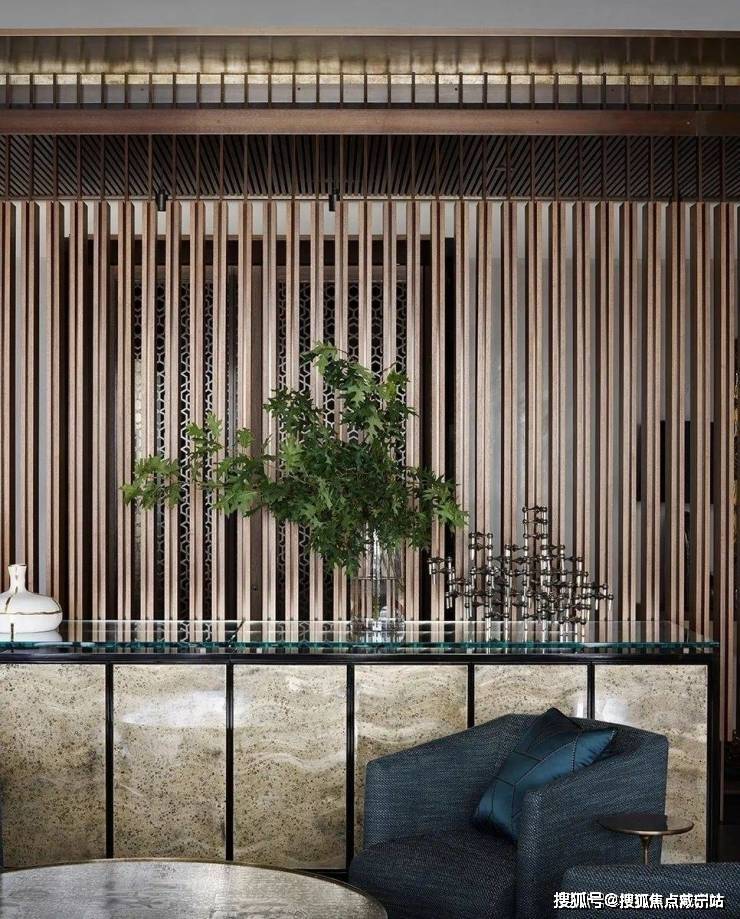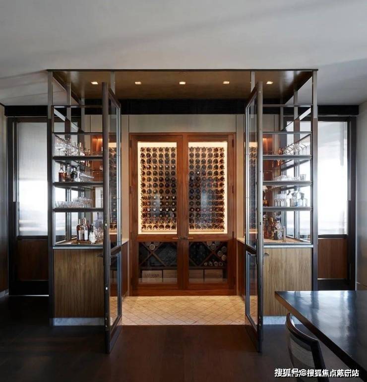 百分之百的优雅对材质的要求异常严格,而胡桃木的材质恰好强调了空间的高级感,利用老式LaVerne茶几、KellyWearstler的椅子和FortStreetStudio的地毯让人仿佛穿越回五十年代的复古时空.