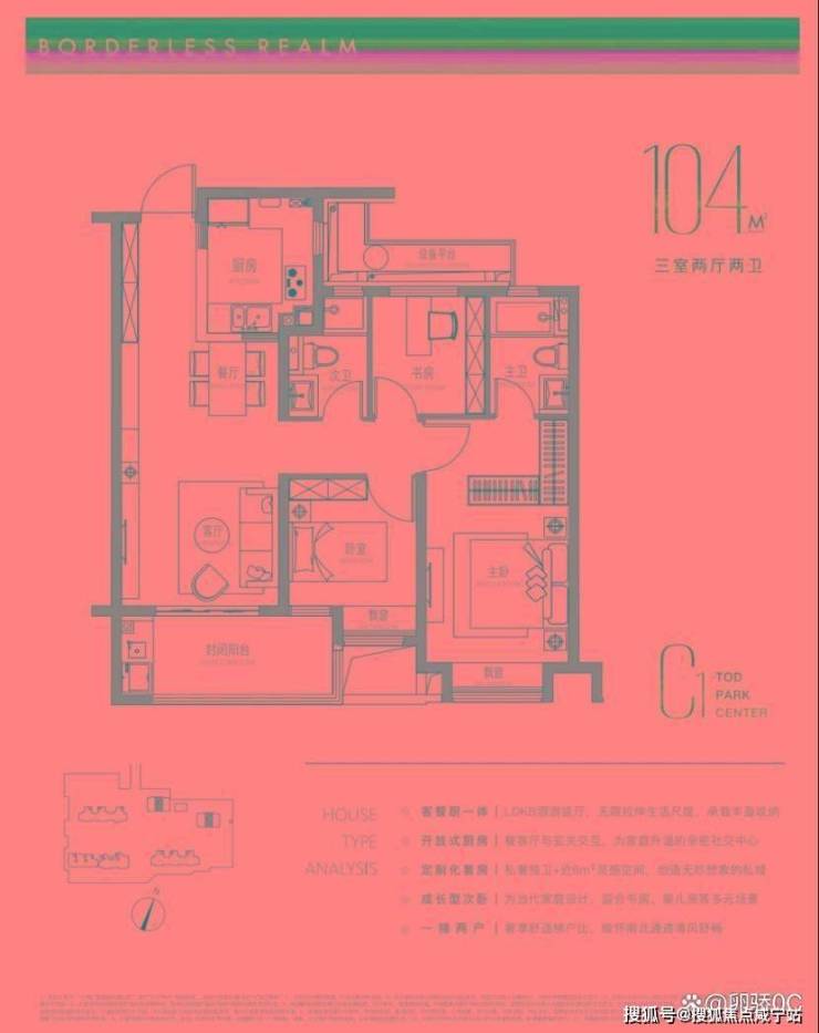 保利光合跃城售楼处电话:400-8800-703☎建面约104m²户型特点:LDKB洄游式竖厅+开放式厨房,生活尺度无限拉伸,主卧近6m²灵感空间,承载更多功能可能,成长型的次卧,书房儿童房随心所欲。