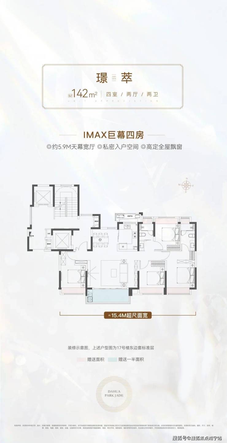 建面约142㎡四房是纯正的一梯一户设计,电梯厅标配开窗带来自然采光。