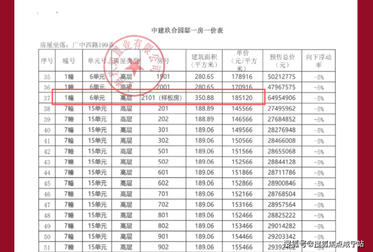 根据官方海报宣传的,单价超18.5万/㎡,参照一房一价表,此次成交位于的房源,就是整个项目最特别的隐藏款之一。