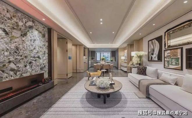 在装饰细节上,从天花板的曲面吊顶、墙体的圆角过渡,到定制家具的流畅线条,都在诉说喜曲不喜平的优雅,天花吊顶,更有刻槽工艺,融入项目logo,赋予业主独一份的尊崇。