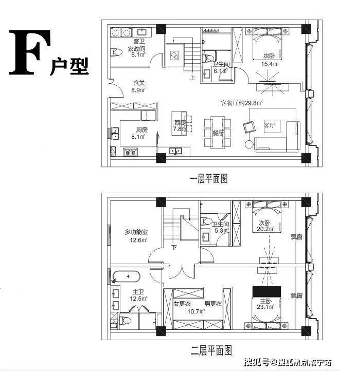 F户型:三套房、中西厨、奢阔主卧带大衣帽间