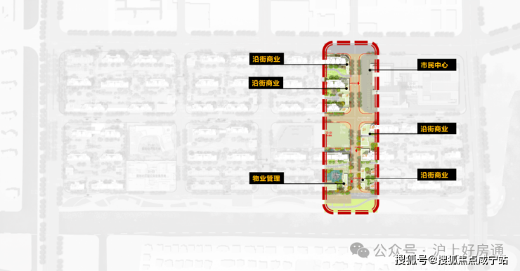 一街为活力商业街,通过纵向布局,在街道两侧配上丰富立体的商业,包括沿街商业、邻里中心、乐活商业街等,满足居民日常的需求。