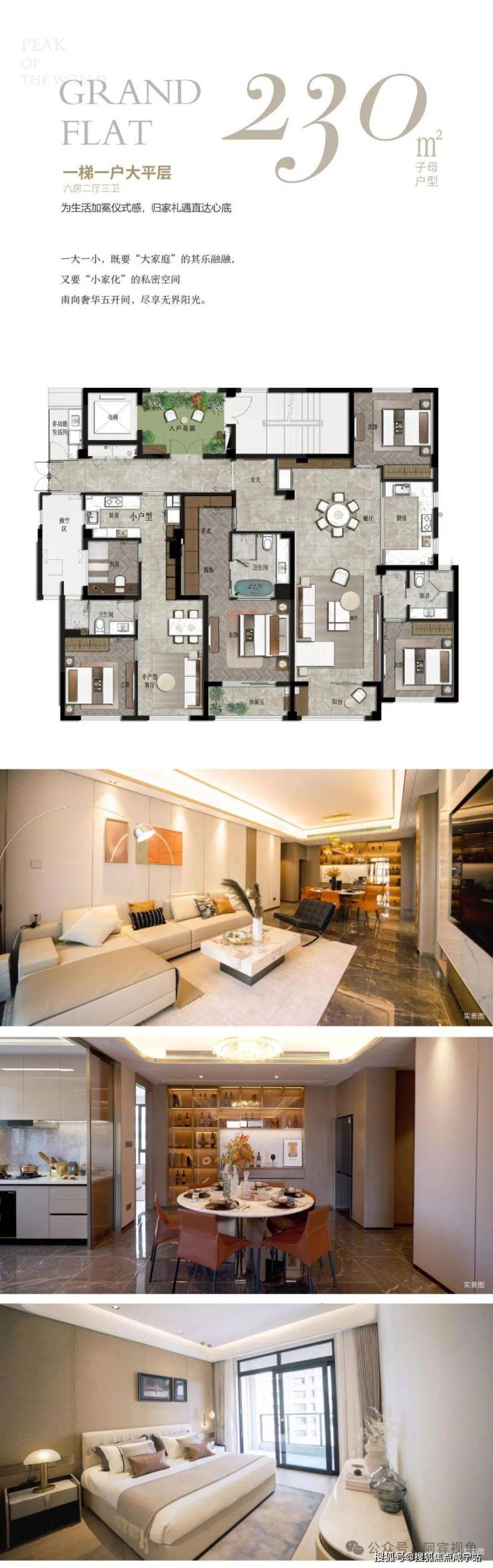 230㎡大平层:五开间三套房设计,全明三卫,南向阳台景观开阔,层高3.7米,空间感震撼。