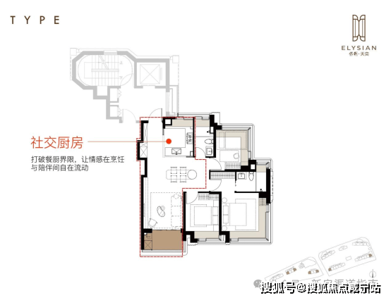 2.social厨房设计,开放式厨房水槽区转向餐厅一侧,杜绝消极空间让室内轻松连贯,也让情感交流、家庭互动在无界限。