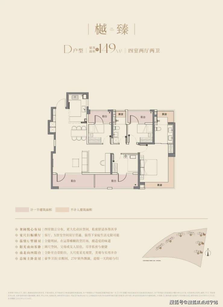 建筑面积约149㎡户型,是此次展示的最大户型,搭配四开间全南向布局,将客厅、主次卧尽揽于阳光丰沛的界面,与整面观景窗搭配,让光线在空间中自由流淌,形成全天候的全景采光带,确保每一扇窗皆为无遮挡的景框,私享通透与静谧的平衡。