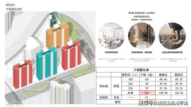项目共提供158套房源,其中可售商品房为137套。户型比较纯粹,都是中大户型的改善居住平层,2梯2户。