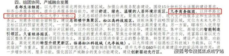 四大产业区背后的强大购买力,对九亭配套的发展,甚至板块价值提升都有积极作用,值得期待。