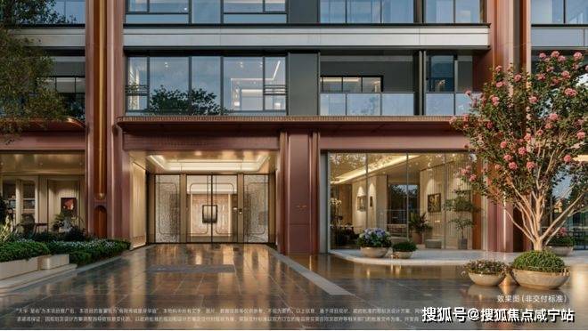 在选材上,项目采用 米色石材、铝板和金属镶框 进行多元混搭,重点刻画单元入口、入户大堂等细节,质感非常丰富。尤其 艺术感的弧形镜面立面 ,与门前蜿蜒的水岸风光相呼应,让建筑仿佛拥有了呼吸感和浪漫的情绪。