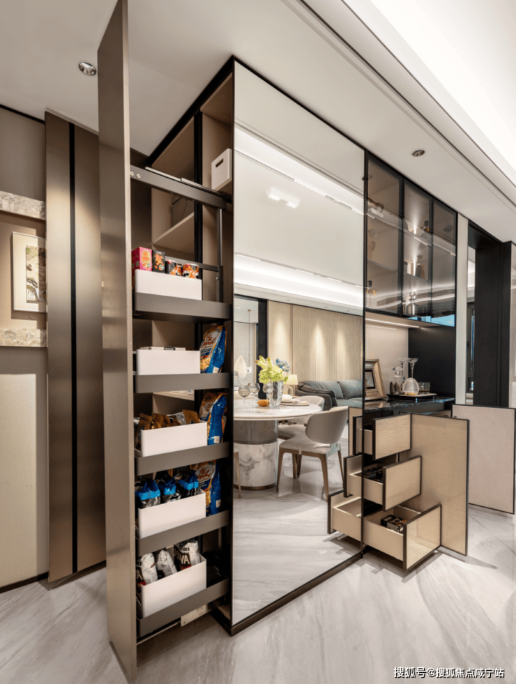 其一,餐厅的两侧均为收纳空间。