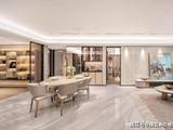 为了营造归家的仪式感,越秀杨浦天玥精心打造了宽约35米、高约5.1米的酒店式宏伟门头,并引入了价值不菲的名贵黑松。在酒店式入户大堂的营造上,精选了雪山飞狐奢石、高山流水奢石、星白奢石等珍贵材料,将品质感提升至极致。同时,酒店式入户大堂汲取海派经典之精髓,融入了古铜色金属格栅、海派风格的拼花装饰(首层及地下大堂)、以及海派复古压花玻璃等元素,营造出浓郁的人文气息。