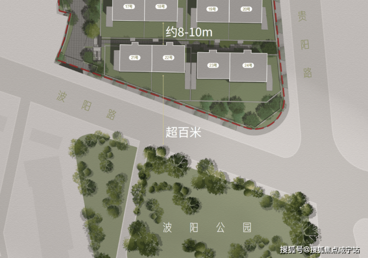 2、约10米Max楼距,尊享私密空间;头排超百米,后排约8-10米楼距,断层级尺度