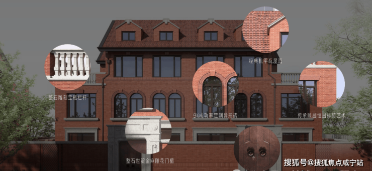 4、延续玖里最受欢迎的现代复古建筑风格,同款砖艺与屋面瓦材,随处可见天然石材整石雕刻工艺,新一代玖里系水岸风貌作品