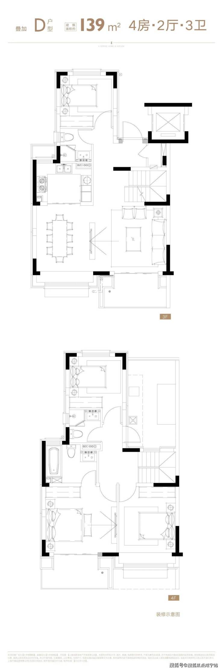 项目叠墅户型有建面约142㎡下叠,建面约139㎡上叠。