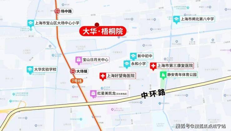 该项目位于宝山区大场板块,地处界华路和场中路交界处,靠近大华老镇嘉年华,旁边就是地铁7号线场中路站。