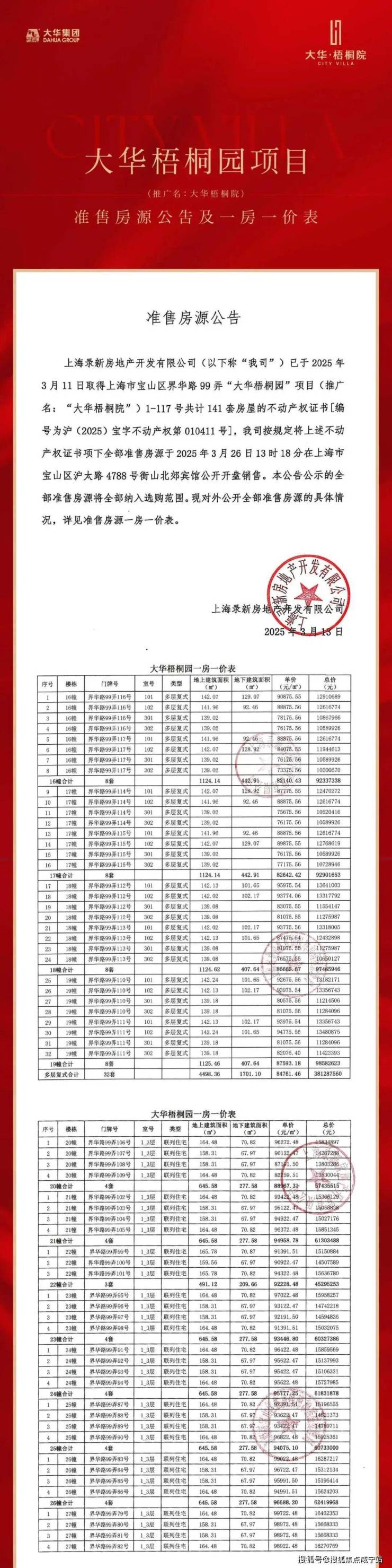 最新消息!上海北中环 7号线场中路站旁,特别稀缺城市联排别墅「大华梧桐院」约139-142㎡叠墅&158-165㎡联排,仅141套实景现房;均价9.18万/㎡!1300多万直接实现都市别墅梦!售楼处线上火热预约中!