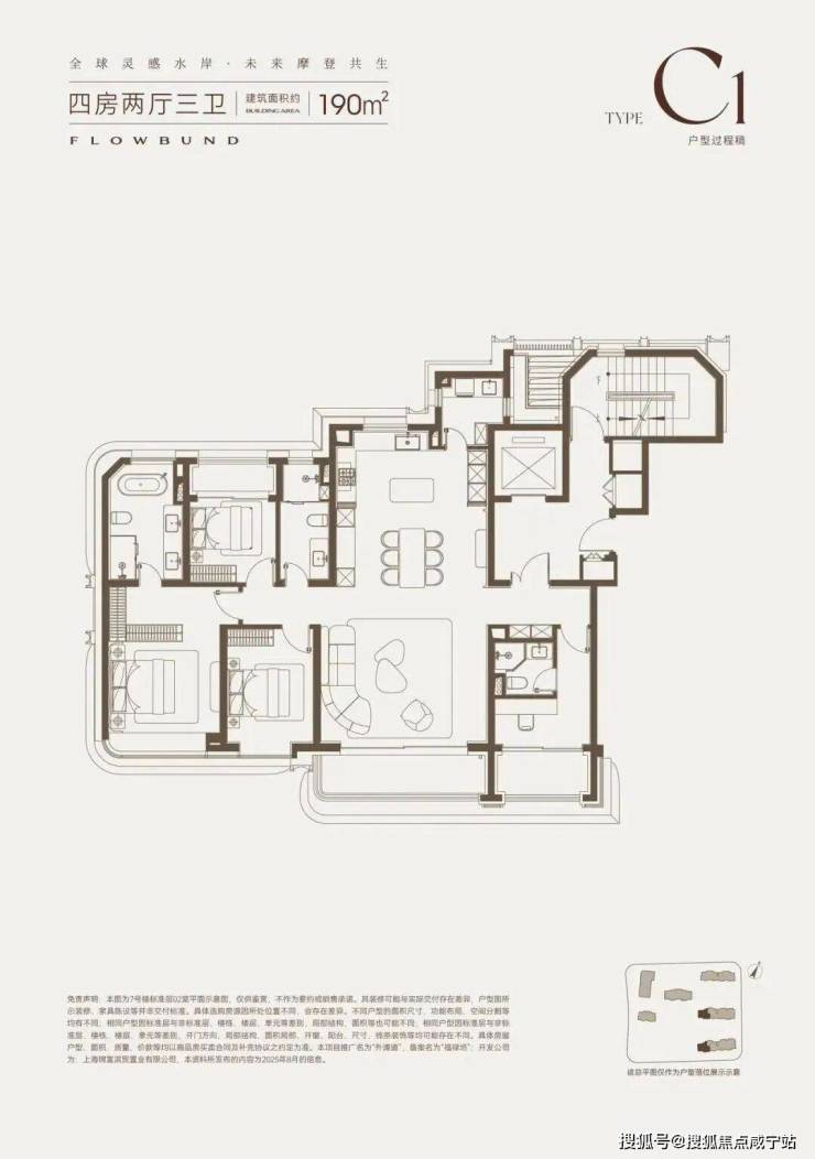 LDKB一体化,中西双厨房、餐厅、客厅外接弧形转角宽景大阳台,空间尺度感拉满!