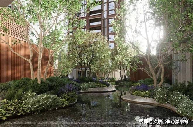 有别于大多数的市区项目以兵列树阵式的景观设计,外滩瑞府通过建筑楼体的偏转形成了围合式的景观布局,通过这种创新布局,项目不仅 形成连续的中心花园,更因楼栋布局与边界有夹角,自然形成一系列边角院落空间。